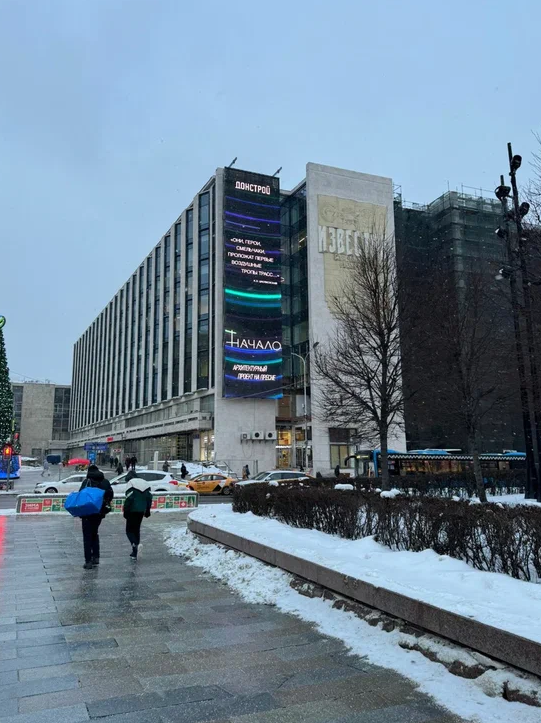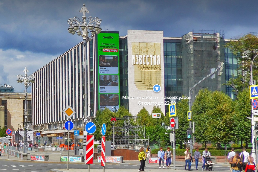 Пример рекламы на медиафасаде г. Москва, Известия, улица Тверская, д. 18, к.1