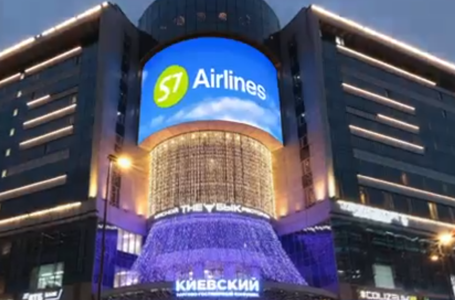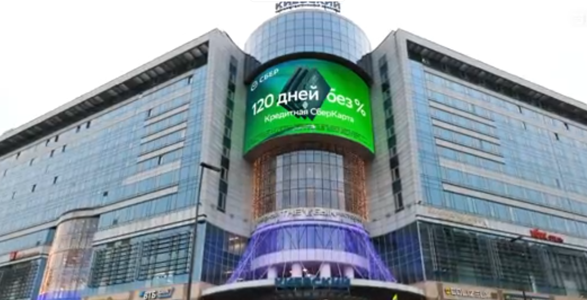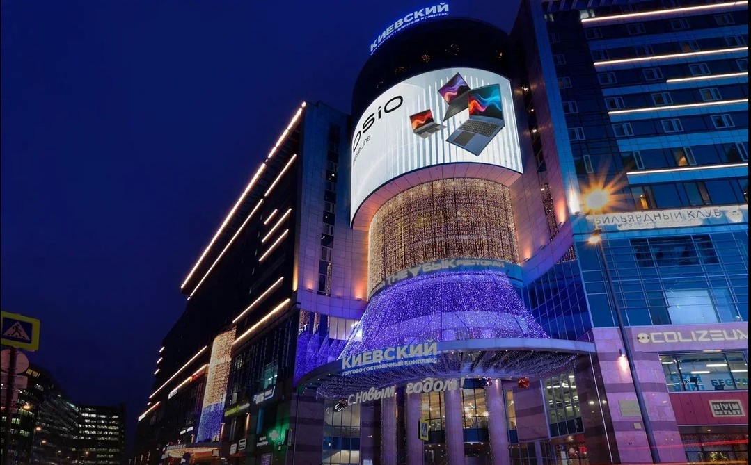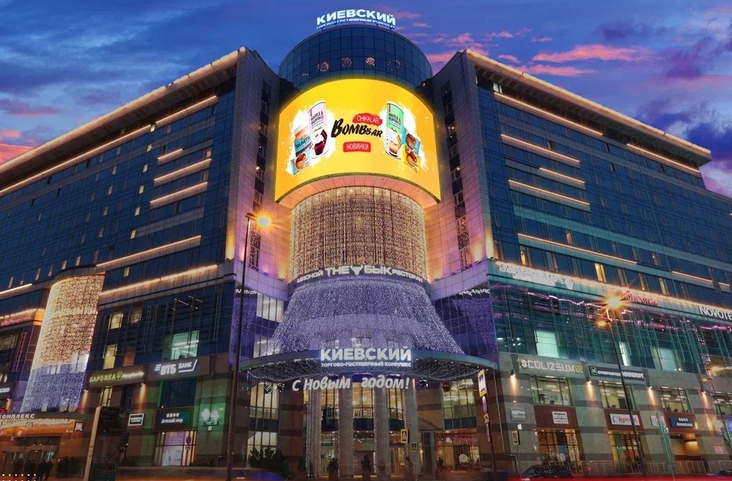 Пример рекламы на медиафасаде г. Москва, ТГК Киевский, ул. Киевская, д.2