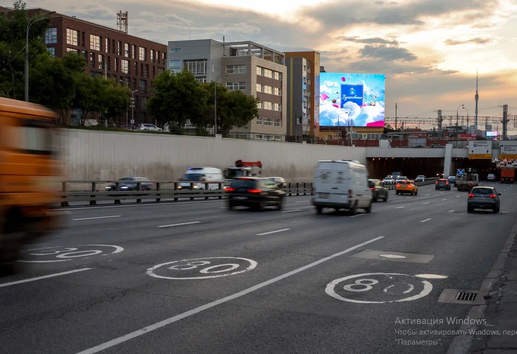 Дополнительно необходимо отметить, что яркость экрана автоматически регулируется в зависимости от погодных условий, что существенно улучшает видимость рекламы даже в самый яркий солнечный день. К слову, яркость медиафасада в солнечный день доходит до 100%. В ночное время этот показатель составляет от 10 до 35% (в соответствии с требованием ФЗ «О рекламе»).