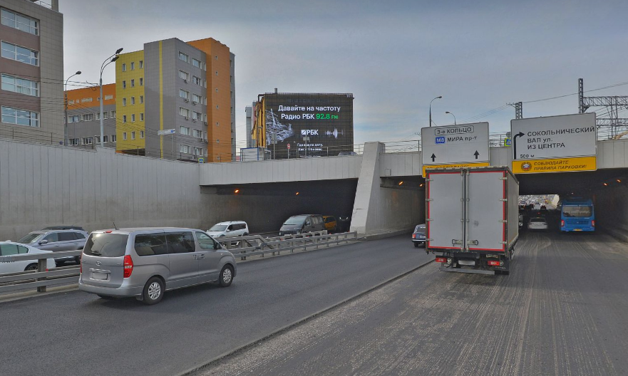 Справка: Третье транспортное кольцо (ТТК), ранее Кольцо «В» — автомобильная дорога в Москве, одна из трёх кольцевых магистралей города Москвы наряду с Садовым кольцом и Московской кольцевой автомобильной дорогой. Общая протяжённость ТТК составляет 35,1 километра, из них около 19 километров — эстакады, около 5 километров — тоннели. Ширина автодороги на основных участках составляет не менее восьми полос (встречаются сужения до шести полос, например, между Нижегородской улицей и Волгоградским проспектом и вблизи Москва-Сити). На третьем транспортном кольце находятся 17 транспортных развязок. Наземные пешеходные переходы и пересечения с другими дорогами на одном уровне отсутствуют, что позволяет обеспечить непрерывное скоростное движение на всём протяжении автотрассы.