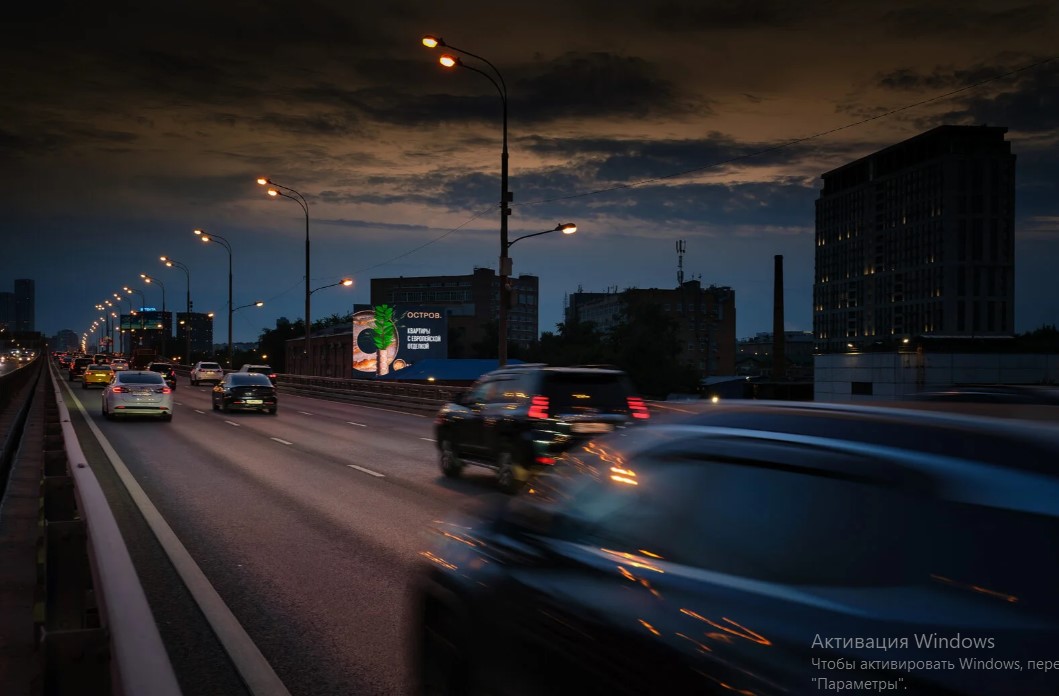 Дополнительно необходимо отметить, что яркость экрана автоматически регулируется в зависимости от погодных условий, что существенно улучшает видимость рекламы даже в самый яркий солнечный день. К слову, яркость медиафасада в солнечный день доходит до 100%. В ночное время этот показатель составляет от 10 до 35% (в соответствии с требованием ФЗ «О рекламе»).